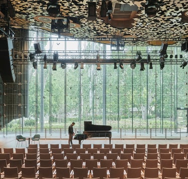 a man wearing headphones standing in a field